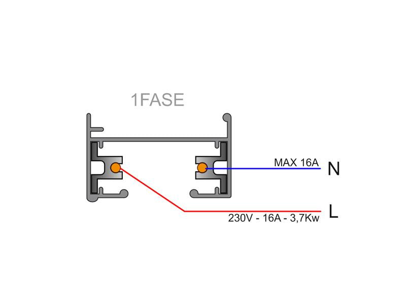 El sistema de carril monofásico de 1 encendido está formado por un perfil de aluminio macizo con dos conductores eléctricos. Permite crear fácilmente la configuración deseada: horizontal o vertical, adosado o empotrado, en la pared o en paneles independientes. El sistema también se puede instalar suspendido utilizando varillas/cables de suspensión y tapas embellecedoras. Todas las luminarias tienen su propia alimentación independiente. Las luminarias se desplazan y orientan fácilmente para cambiar la iluminación en función de la presentación de los productos. De esta forma es posible crear un sistema de carriles multifuncional, válido tanto para iluminación de acento como para utilizarlo para suspender otros elementos decorativos o material publicitario. También hay disponible una serie de accesorios: conectores de empalme, alimentadores y accesorios de montaje que garantizan la conexión eléctrica y mecánica.