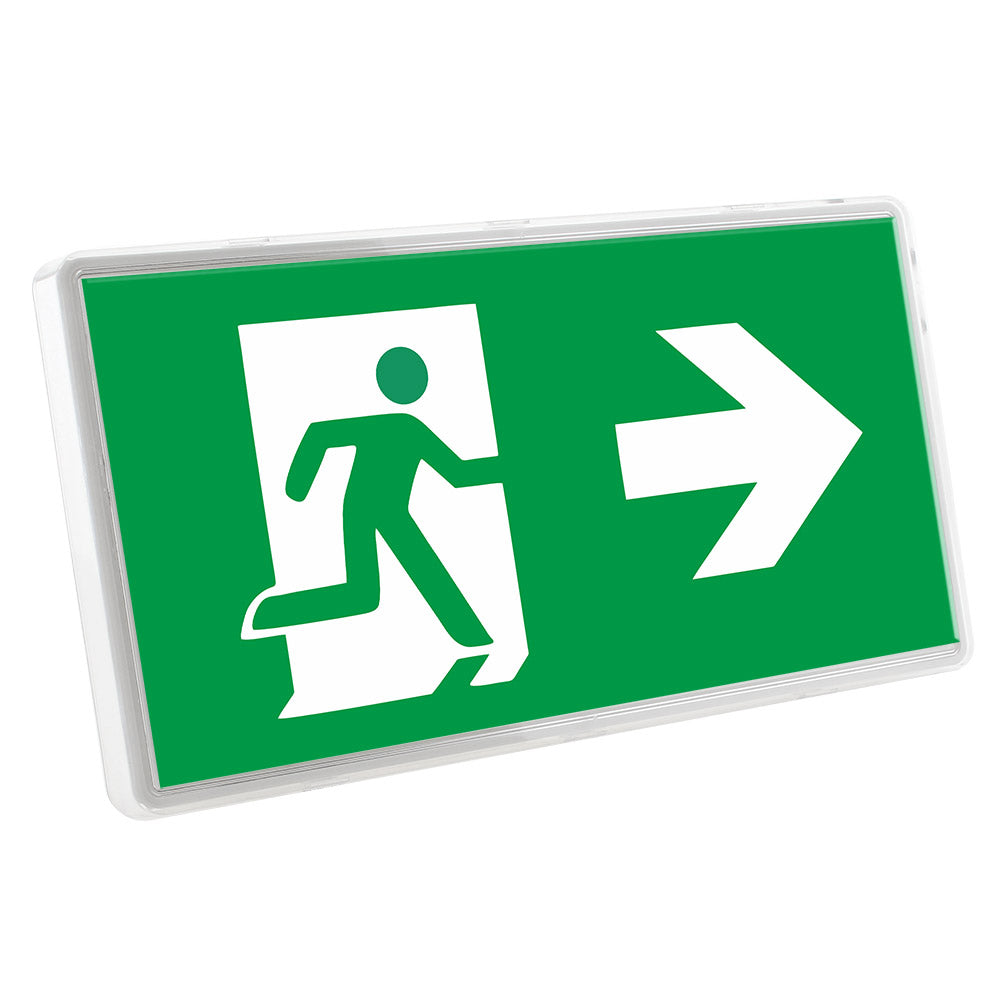 Opcionalmente dispones diversas señaléticas que puedes adquirir por separado e insertar fácilmente en la emergencia led.