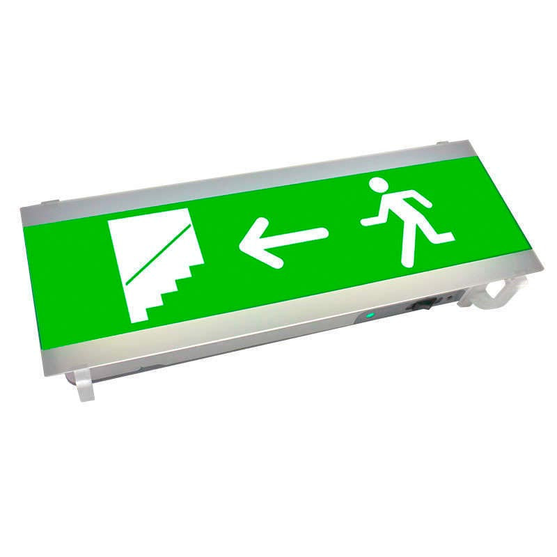 Señalización de fácil instalación para las luminarias led EMERLUX F415. Realizado en metacrilato traslúcido que ofrecen una comunicación visual que cumplen la función de guiar, orientar u organizar a una persona o conjunto de personas.