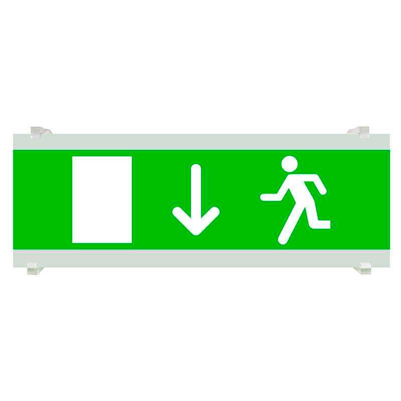 Señalización de fácil instalación para las luminarias led EMERLUX F415. Realizado en metacrilato traslúcido que ofrecen una comunicación visual que cumplen la función de guiar, orientar u organizar a una persona o conjunto de personas.