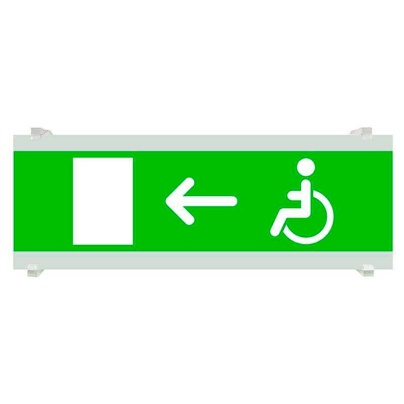 Señalización de fácil instalación para las luminarias led EMERLUX F415. Realizado en metacrilato traslúcido que ofrecen una comunicación visual que cumplen la función de guiar, orientar u organizar a una persona o conjunto de personas.