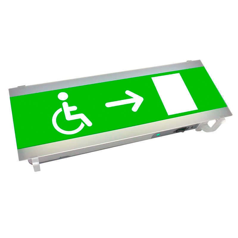 Señalización de fácil instalación para las luminarias led EMERLUX F415. Realizado en metacrilato traslúcido que ofrecen una comunicación visual que cumplen la función de guiar, orientar u organizar a una persona o conjunto de personas.