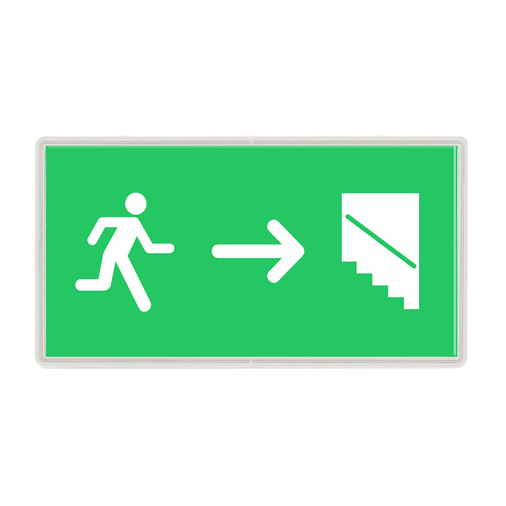 Señalética de fácil instalación para las luminarias led WALLUX. Realizado en policarbonato óptico frost con vinilo de alta calidad que ofrecen una comunicación visual de fácl comprensión.