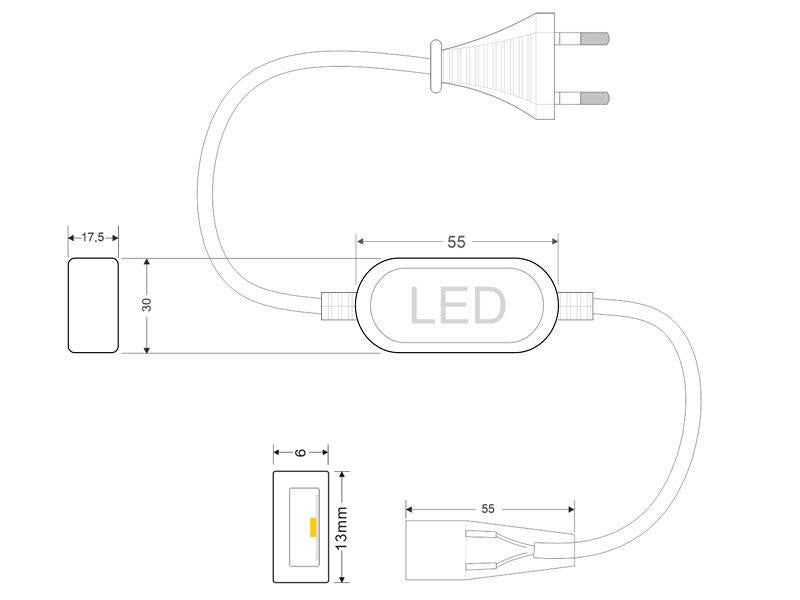 Cable rectificador que permite conectar de manera directa la tira LED monocolor SMD2835 de alta tensión a la red eléctrica de 220V directamente, sin necesidad de transformadores ni ningún otro dispositivo adicional. Cada alimentador soporta un máximo de 50 metros de tira LED a 220V con chip SMD2835 de conectores rápidos.