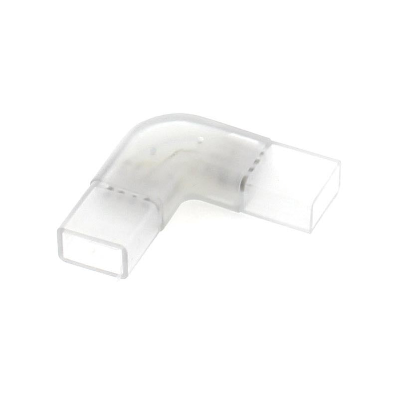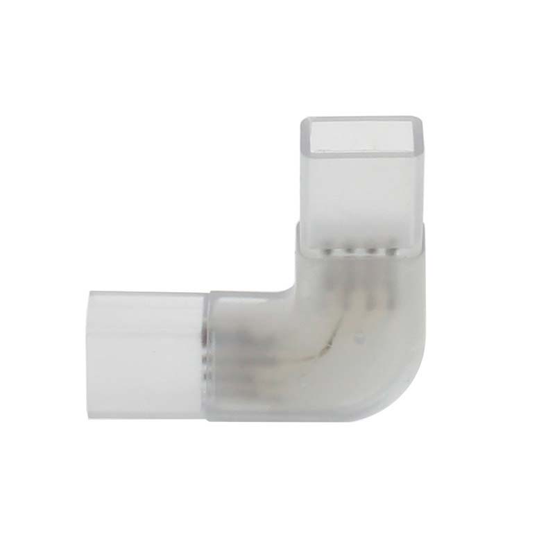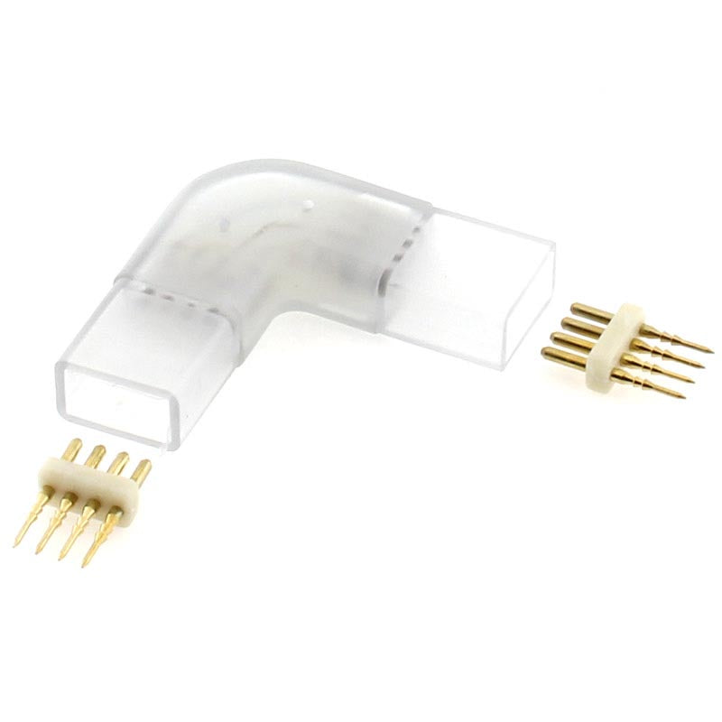 Conector en forma de L que permite la unión entre diferentes tramos de tira con facilidad y seguridad. Específica para tira LED a 220V RGB SMD5050. Incluye Pins de conexión.