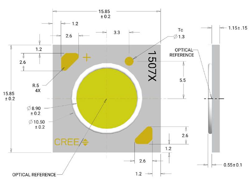 Chip led COB CREE 1507, 12W, Blanco cálido