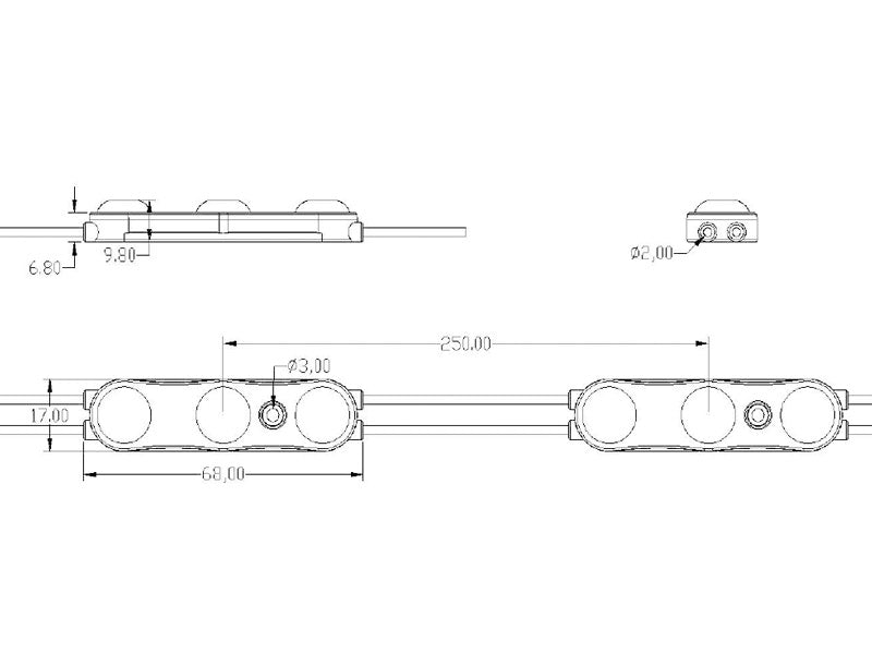 Módulo led ideal para proyectos especiales, rótulos luminosos, etc. Se compone de 3 led SMD2835 de alta luminosidad y cables de conexión.
