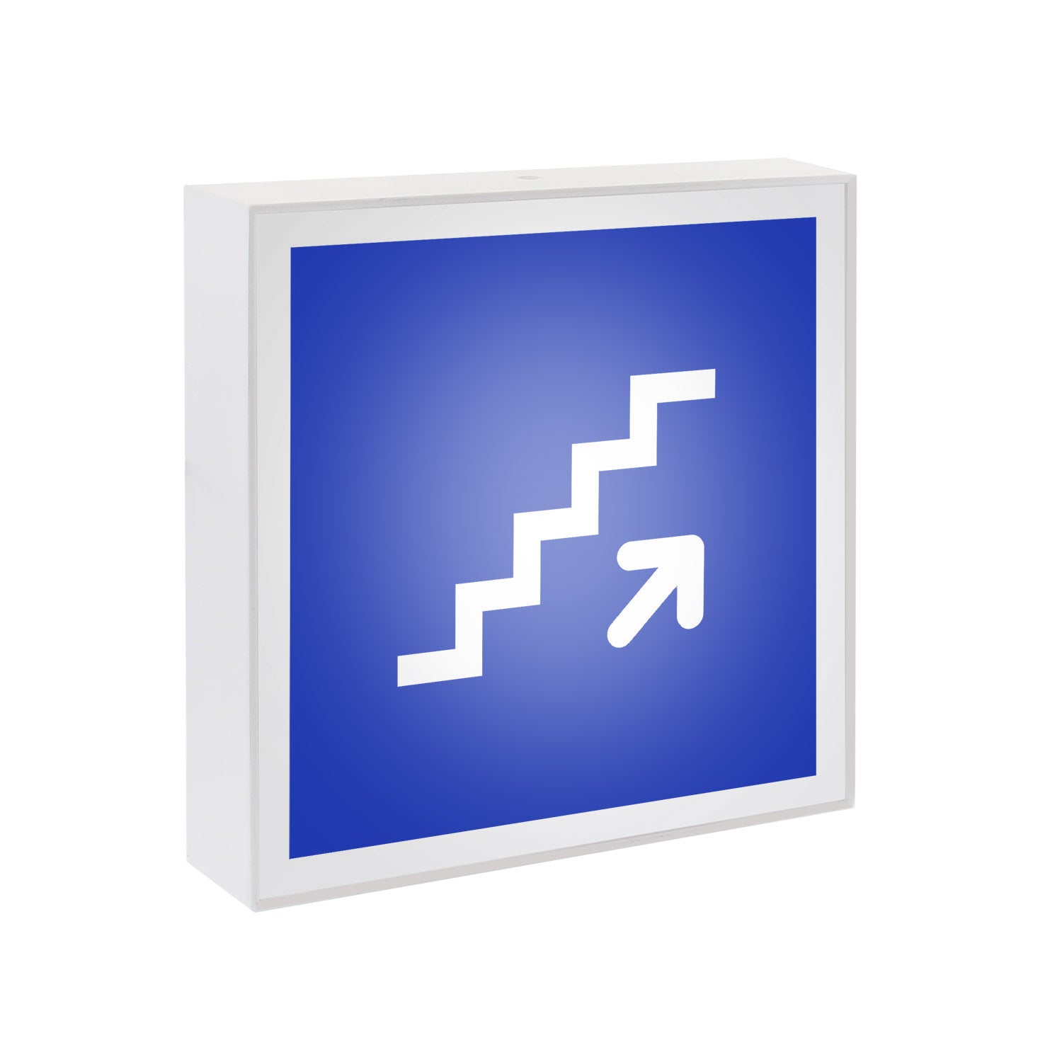Aplique LED de superficie fabricado en aluminio lacado en color blanco mate y luminaria led con señalética de fácil comprensión.