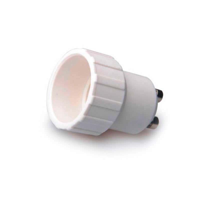 Permite poder utilizar bombillas GU10 en lámparas o luminarias con casquillos E14