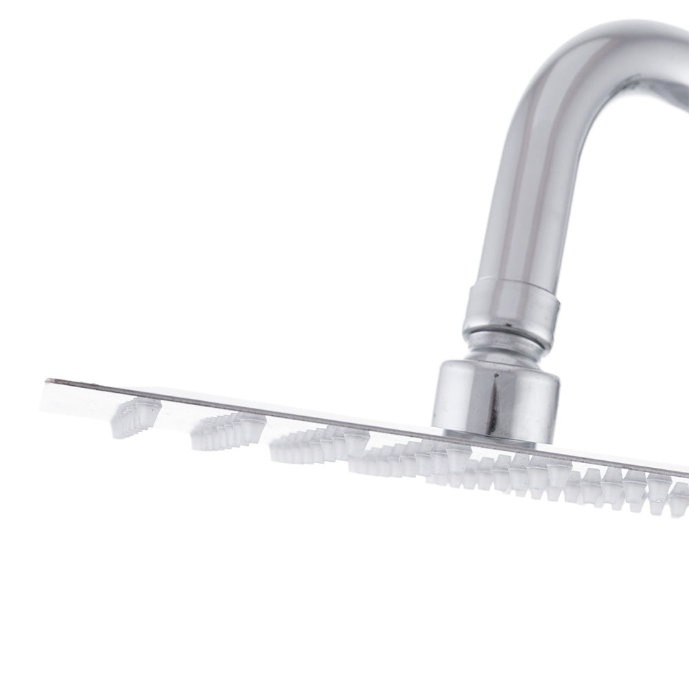 Rociador de ducha en acabado cromado con chorro efecto lluvia. Cuenta con picos de base de silicona que facilitan la limpieza del rociador, evitando que la cal se acumule. El consumo de agua de chorro lluvia a 3 bars es 24 l/min.