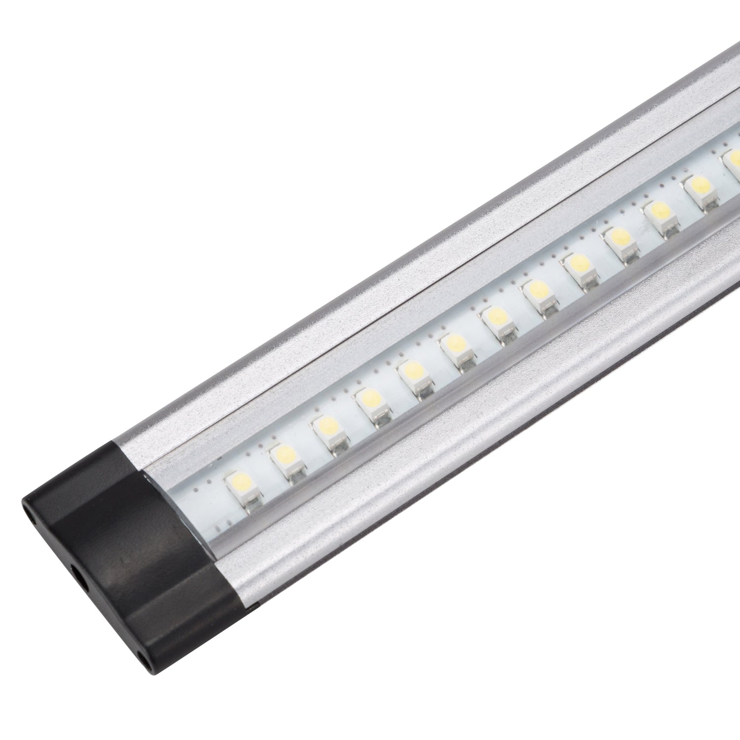 Cuenta con una alta eficacia (100 Lm/W) consumiendo 3W mediante 42 LEDs SMD3528, logrando proporcionar un flujo luminoso de 300Lm distribuidos uniformemente por un difusor transparente de donde se obtiene un índice de reproducción cromática de 80. Su consumo representa un valor de 3kWh/1000h, reduciendo la cantidad de energía facturada y las emisiones de gases contaminantes a la atmósfera. Esta regleta debe ser alimentada con un transformador no incluido en el paquete, que debe ser conectado directamente a la red, adicionalmente se puede adquirir accesorios para la instalación de la regleta, como interruptores, reguladores, conectores y cables. Acabado en color gris construido con aluminio y policarbonato. La regleta tiene un grado de protección IP25 (válido para polvo y humedad en interiores), además de ser suficientemente robusto para las exigencias mecánicas requeridas.