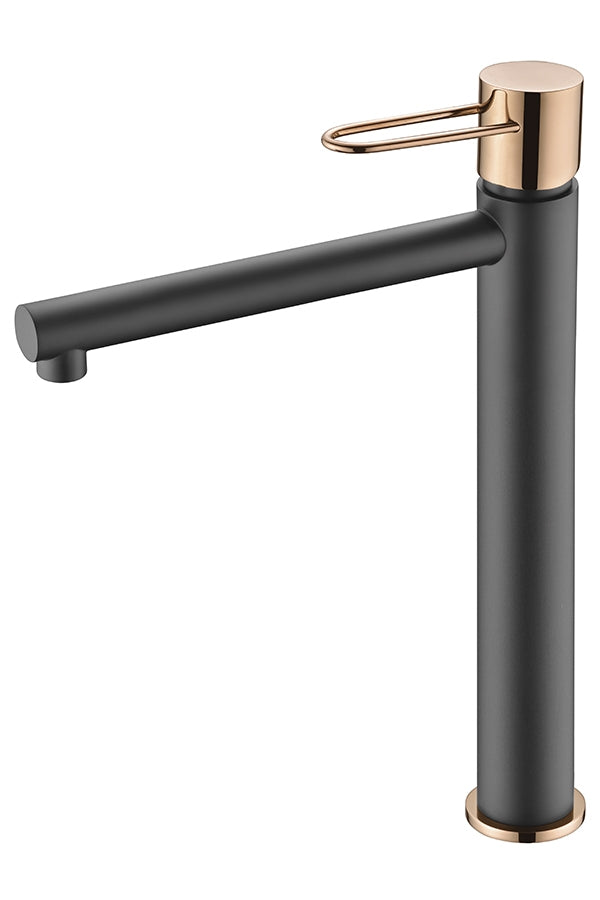 Monomando Lavabo Alto Milos Negro Oro Rosa [BDY027-3NOR]